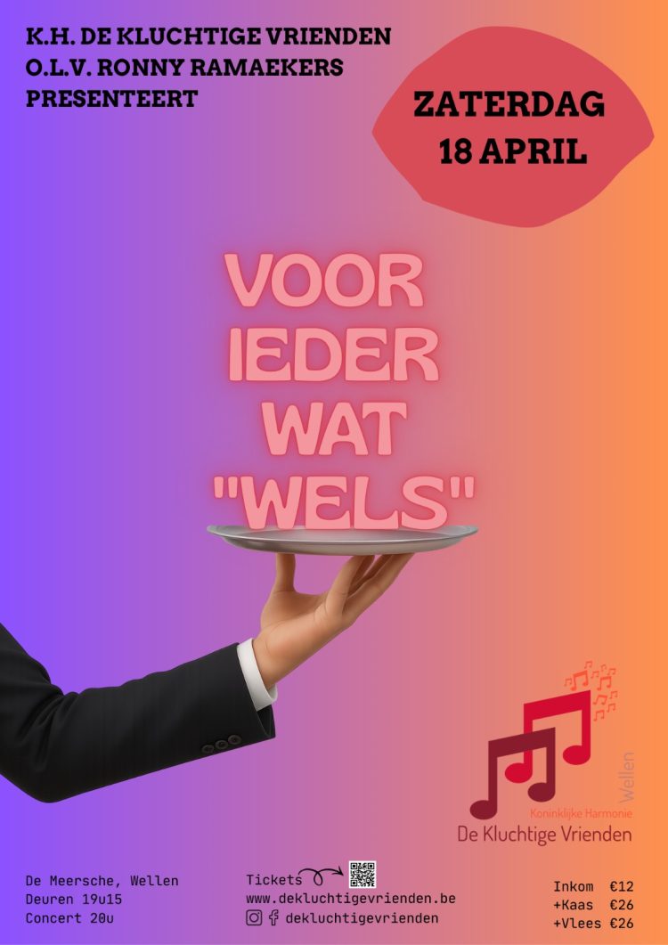 Voor ieder wat “Wels”: Wellodieus in de gloednieuwe zaal! 🎶✨ Op zaterdag 18 april 2026 nodigt Koninklijke Harmonie De Kluchtige Vrienden je uit voor een heel bijzondere editie van ons jaarlijks concert. Dit jaar trekken we naar de gloednieuwe Zaal De Meersche, die dan nog maar net de deuren heeft geopend! Onder de titel “Voor […]